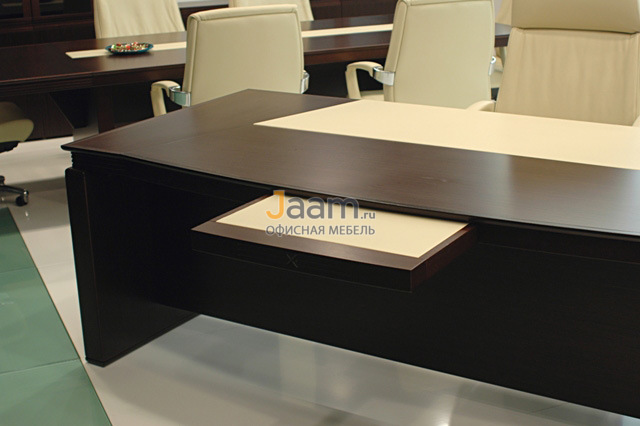 Стол письменный закругленный EC233 №6454 - столешница: тамбурат 54 мм, кромка: массив, покрытие: шпон, стекло: прозрачное.ШxГxВ | 230x110x75 |
